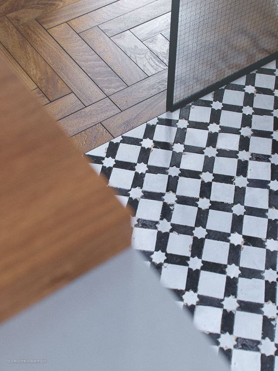 ▲ 好看的木地板和瓷砖直接拼接,就是用胶水粘住了木地板