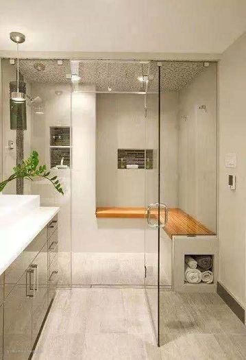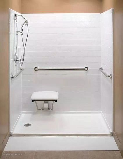 有一些年纪更大的老人,站着洗澡不方便,可以在淋浴室设置座椅节省体力。但不宜使用浴缸,容易摔跤。浴室所有地方都应铺设防滑垫。