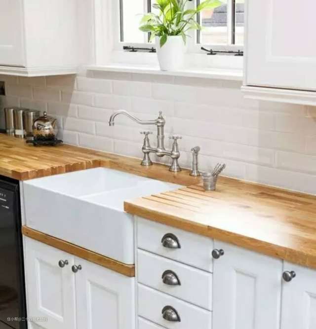 实木台面的颜值很高,可以说是百搭的台面。价格上比较昂贵,除非你买小块木材拼接起来的,才会便宜一些。