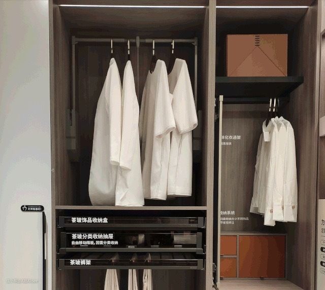 将低频区的顶部空间变为高频区,有效利用高部空间,拿取也方便,又可以让贵重衣服常年优雅的挂着。