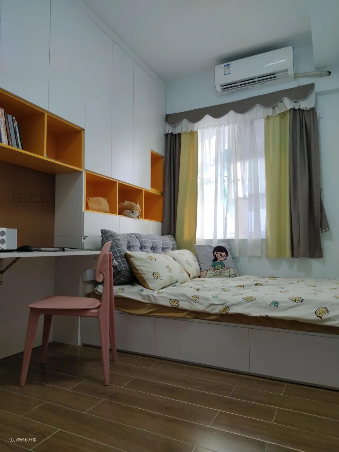 做到顶的柜子,用起来真的是非常不便,像设计姐这样身高不到1米6的,想要放东西到顶柜去的话,踩上高凳都非常困难,每次用顶上的柜子,踩上高凳再踮起脚尖,感觉很危险,一是怕踩空、二是怕行李箱砸下来。