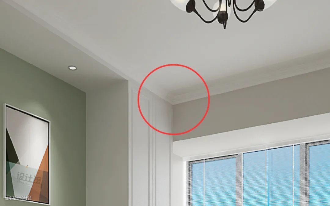 ▲柜体与石膏线收口处理,建议柜子边上也装石膏线。