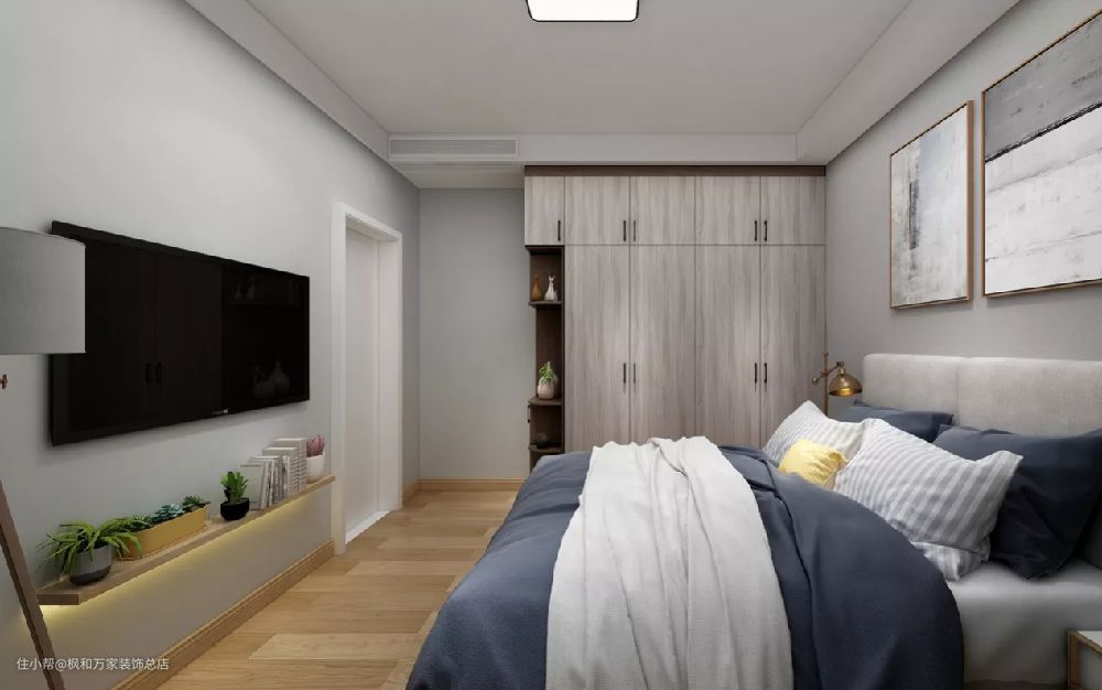嵌入式衣柜,能极大解决收纳问题,半开放式原木色柜面,好高级。