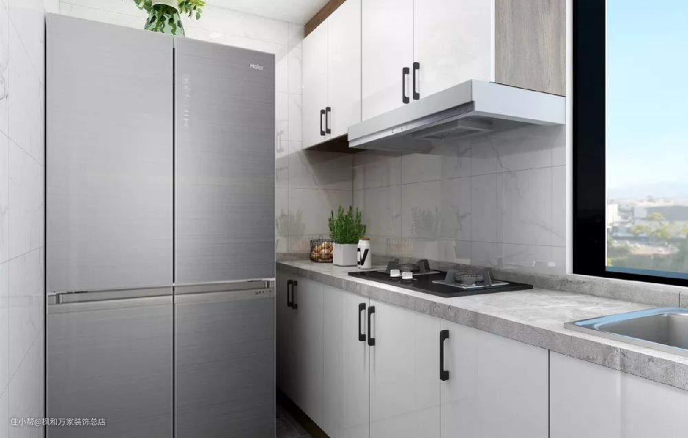 厨房,白色的整体橱柜,让烹饪区域显得更加宽敞明亮。