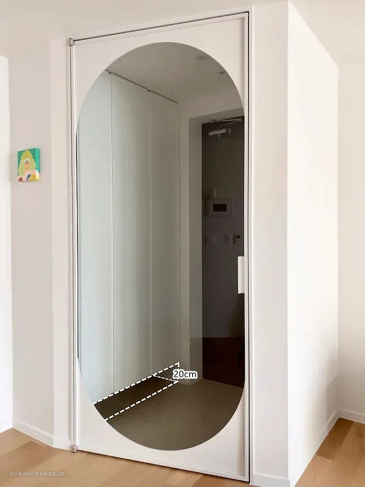 - 右边一面墙划分出门厅和客厅空间,门口放个垃圾袋,快递箱都能被完美遮挡。