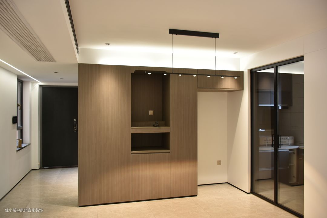 餐厅进入厨房的门,采用了隐藏式推拉门,两边开可以隐藏到墙体中,进出更加方便。