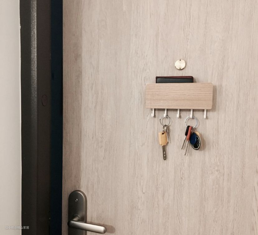 每次回家,总容易把钥匙随手乱放,建议在玄关门上,壁挂一个钥匙架,有五个挂钩,一家人也足够使用。