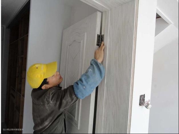 在橱柜安装的第二天,早在一个多月前木门测量完成后,现在可以约安装了。装门的同时要安装的合页、门锁、地吸。 实木门的制作周期一般为一个月,所以,为了让工期衔接紧密,要在主体拆改完成之后尽早让木门厂家上门就门洞尺寸进行测量。关于门洞的处理,大家需要注意一点,如果家里门洞的高度不一致,需要工人处理成等高--好看。