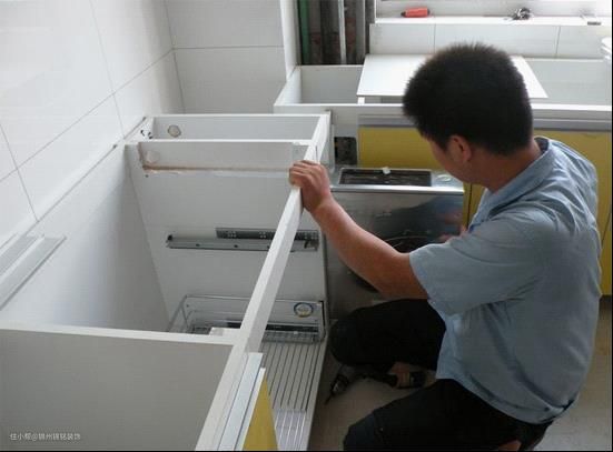 吊顶结束后,可以约橱柜上门安装了。同时安装的还有水槽(可以不包括上下水件)和煤气灶,橱柜安装之前最好协调物业把煤气通了,因为煤气灶装好之后需要试气。