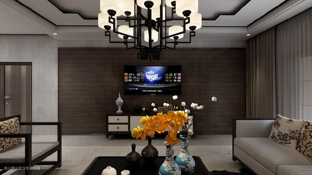 本案为新中式 胡桃木铜铆条案、手工编织藤椅、经典落地灯、绿植、百叶窗通过软装营造的文艺氛围,希望业主可以在这悠闲的听风,看雨,喝茶。客厅,是最重要的会客之所,充满韵味的家居陈设,是对满座高朋至好的礼遇,煮一壶清茶,便能谈笑风生。独倚沙发自斟自酌,亦成一种生活的雅趣。 这一方天地,或清新或雅致,或低调或大气,蕴含着无数灵气和温馨。就像一盏清茶,可抚慰浮华尘世中一颗奔波忙碌的心;就像是一弯明月,可涤荡滚滚红尘中一抹风尘仆仆的灵魂;就像是沙漠绿洲,可提供夏日炎炎里一块清凉的庇护所;就像是久旱甘霖,可滋润被高温炙烤而无比煎熬的心灵。