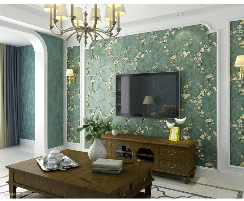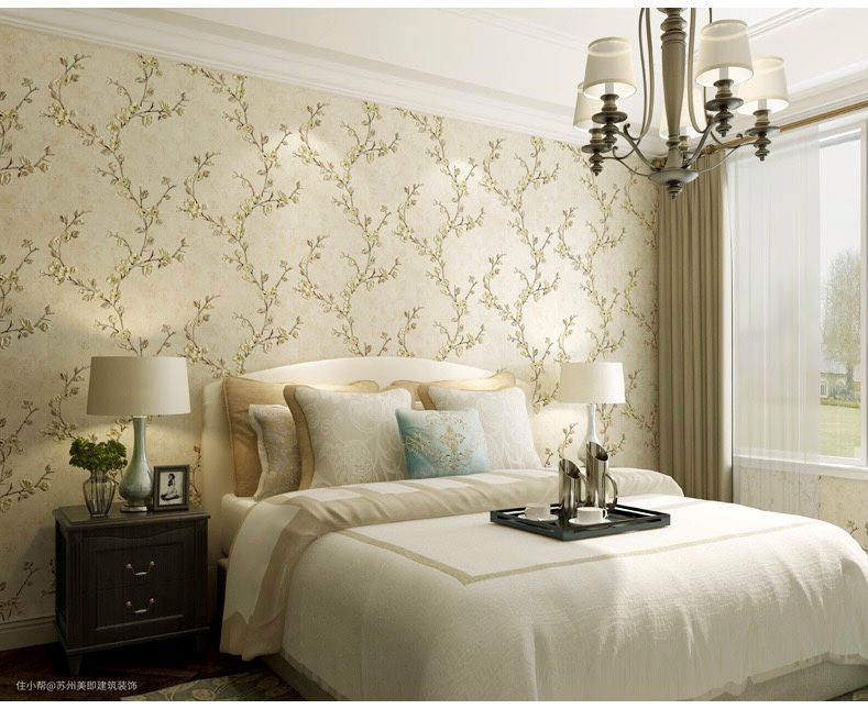 最具乡村风格的壁纸有几类:花草纹(最好是小碎花)、条纹或缎带形、几何图形和单色的暗纹(也可有凹凸肌理)。有时两种壁纸会同时分上下两段使用,中间用带饰隔开。常见的颜色有玫瑰色、淡粉色、浅绿色、浅蓝色、黄色和象牙色,还可以把接近补色的色彩组合在一起使用。