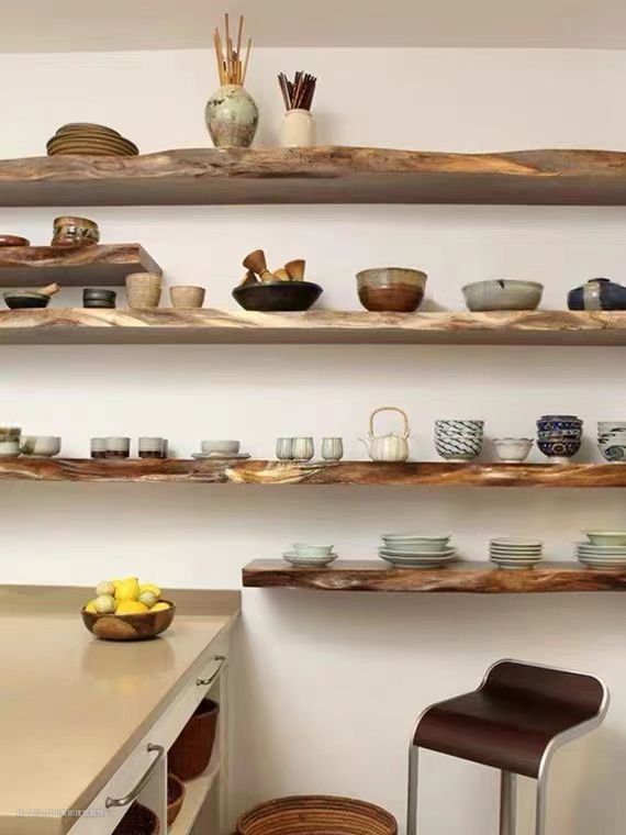 层板由横板与托架组成,放置工艺品或生活用品。有时几块层板会组合在一起使用,形成一种错落有致的布局。层板一般采用与护墙板或家具相同的材料与色彩