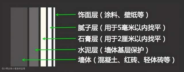 (上图需要注意的是,墙体部分,如果是混凝土墙体,一般不需要石膏层,南方有些地区的工艺,也没有石膏层。)