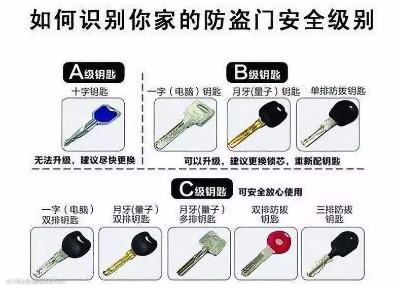 锁芯是一把锁的关键,按照安全等级,锁芯可以分为A、B、C三个等级。
