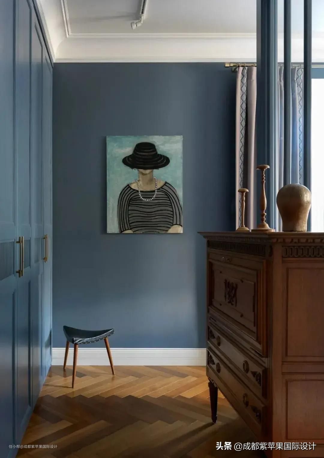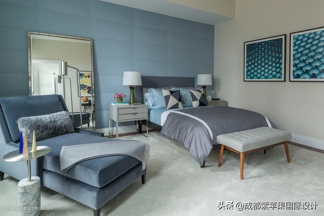 这个空间被宁静安稳的灰蓝色紧紧包围,香甜的美梦弥漫一室,呼吸之间都是浪漫的气息。柔软的心盛放在朦胧的光里,镀上一层慵懒的光晕。在幽幽蓝调的陪伴下,褪去了浮华与嘈杂,留下的是轻巧的愉悦。其实,魅力的产生无需大张旗鼓,无形的力量反而让梦幻变得饱满起来。