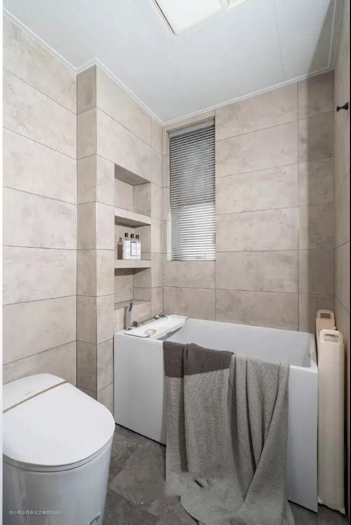 由于潮湿的环境和小空间,这里用不锈钢或其他材质的收纳工具都会有受潮的隐患并且还会占地方,但是壁龛不会,凹进墙面的壁龛不占用空间,并且与墙面同材质可以寿与房齐~