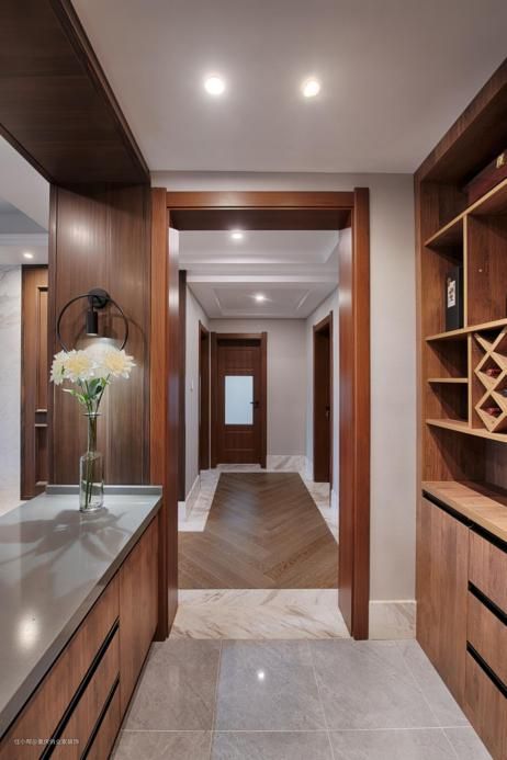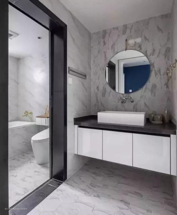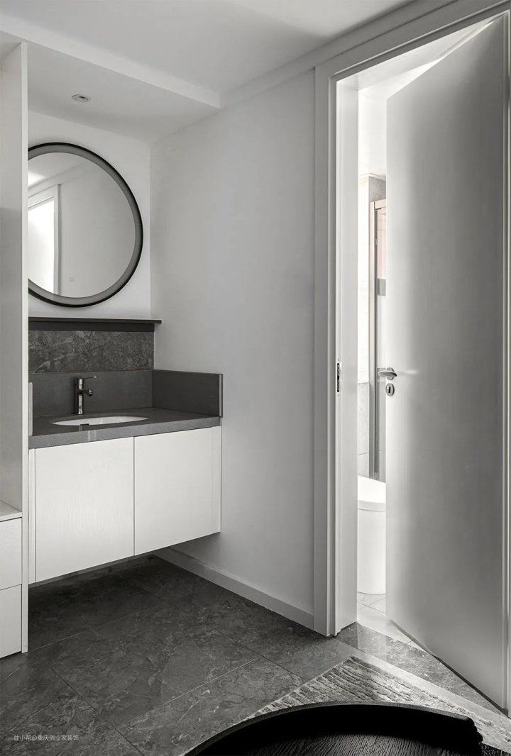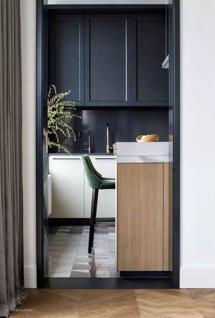 ②与门框相似颜色。门槛石与门框区域保持相似的颜色(变相延伸门框),可以让两个空间的过渡区域色调更和谐,大气。常见的黑色、白色、木色门框都有相似颜色的门槛石。