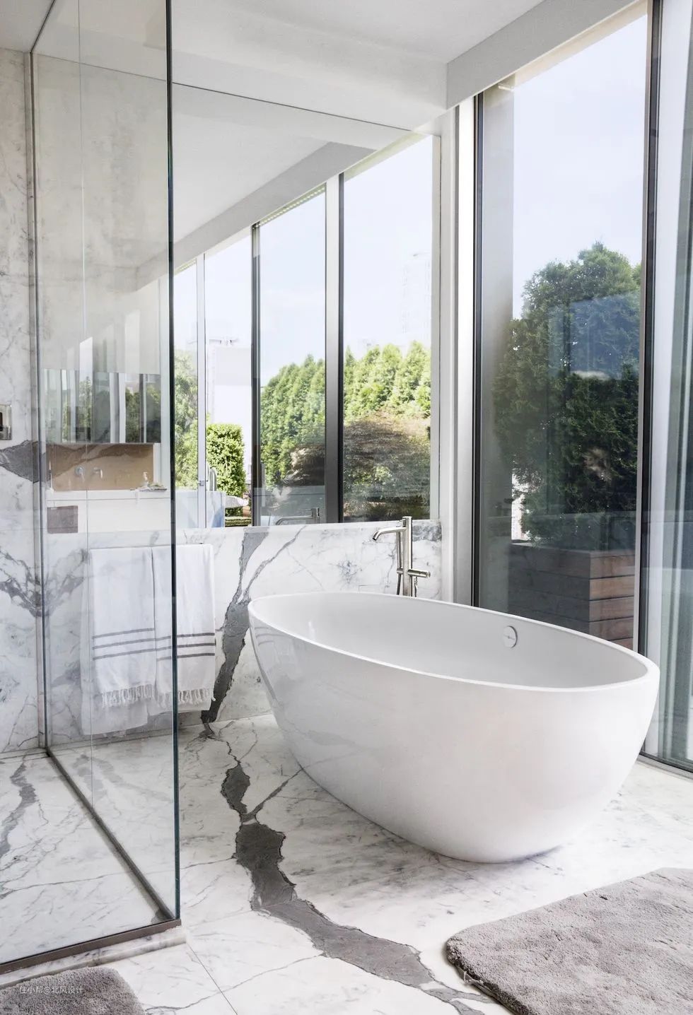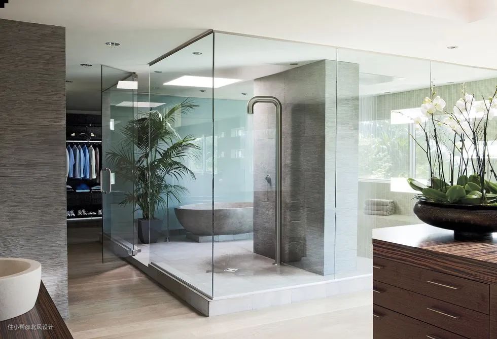 2021年,打造终极度假别墅将成为一种潮流。经历过疫情的我们,也许会越来越看重家的舒适感,一些原本属于度假时光的浪漫,其实在自己家也可以实现。就像这间以混凝土和玻璃幕墙打造的水疗浴室。