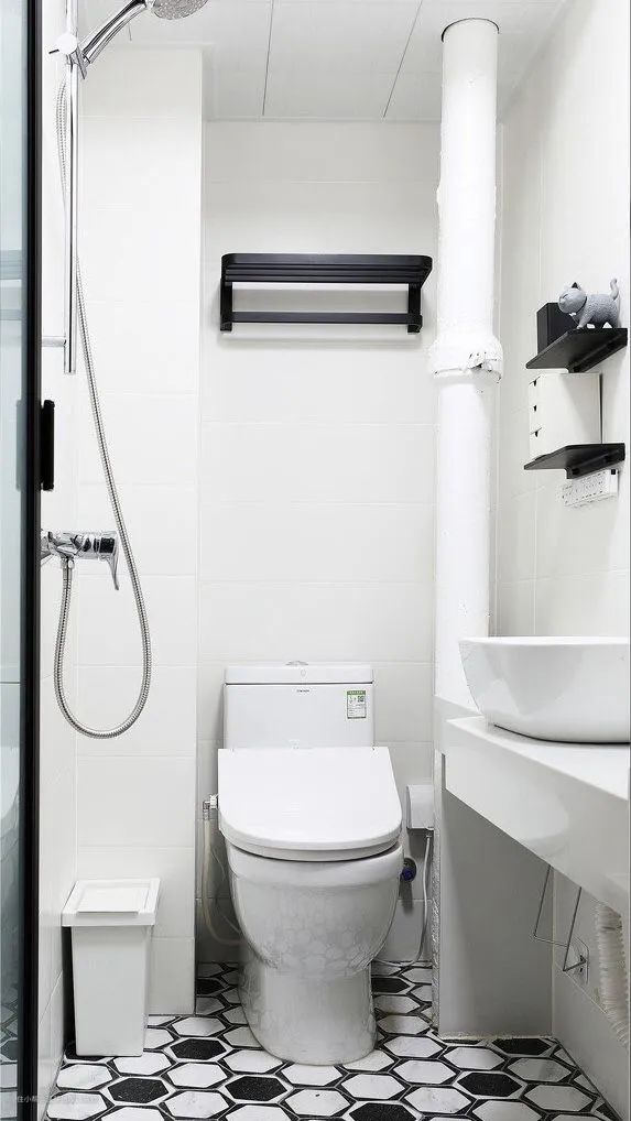 卫生间太小了,为了能节省空间,就连落水管都没有包。包完落水管的话,马桶两边更挤了,每次用的话会打到手肘。