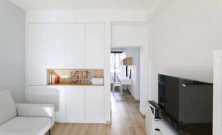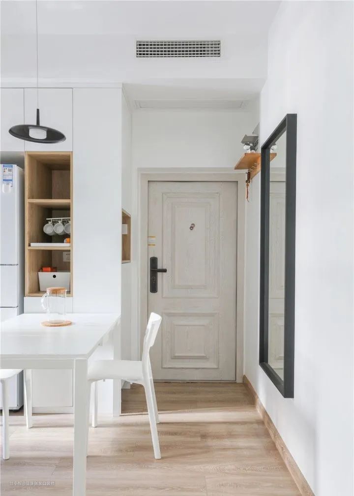 白色能让小户型的家显的更大,所以这套方案整体用的色是以白色和原木色为主。