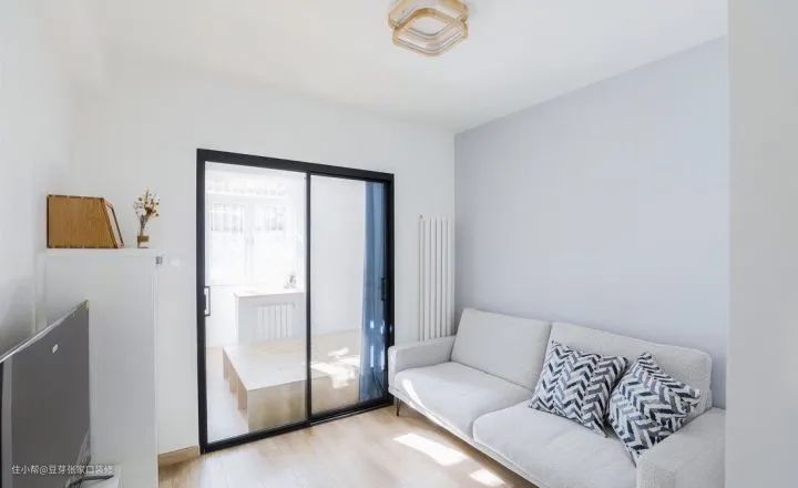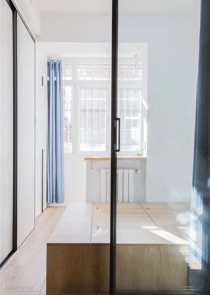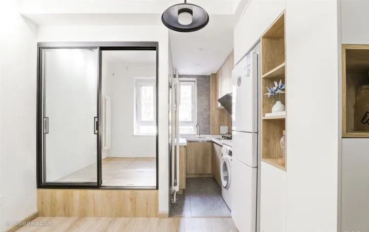 厨房旁空间只做了一个地台安装隔断移门就是一个小房间。