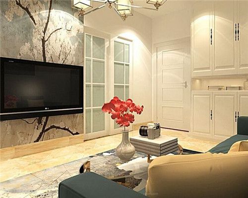 不论大家采用何种材料来装饰电视墙,首要的就是保证材料的环保性。图中是一款手绘墙,它选用丙烯颜料为原料,这种原料防水、不掉色、绿色环保。淡雅的背景墙图案和家装风格完美契合,成为了家装一道美丽的风景线。