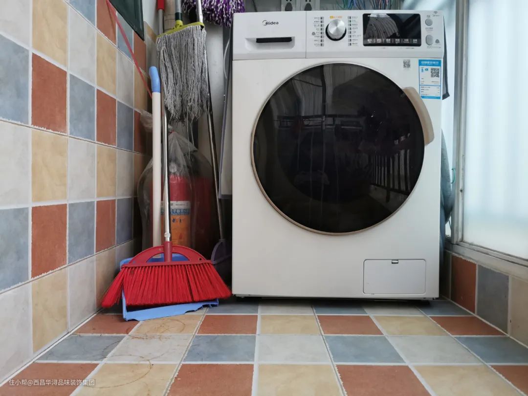 ▲洗衣机旁边,放拖把扫把也刚刚好。