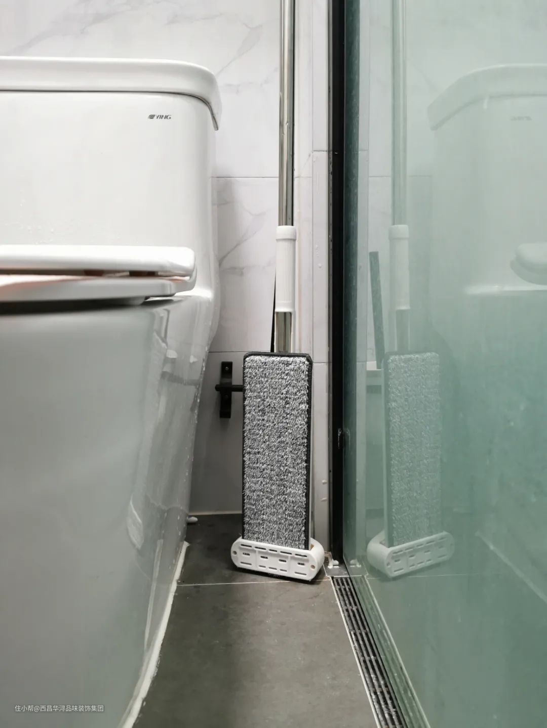 ▲马桶旁边,也可以放置拖把扫把。