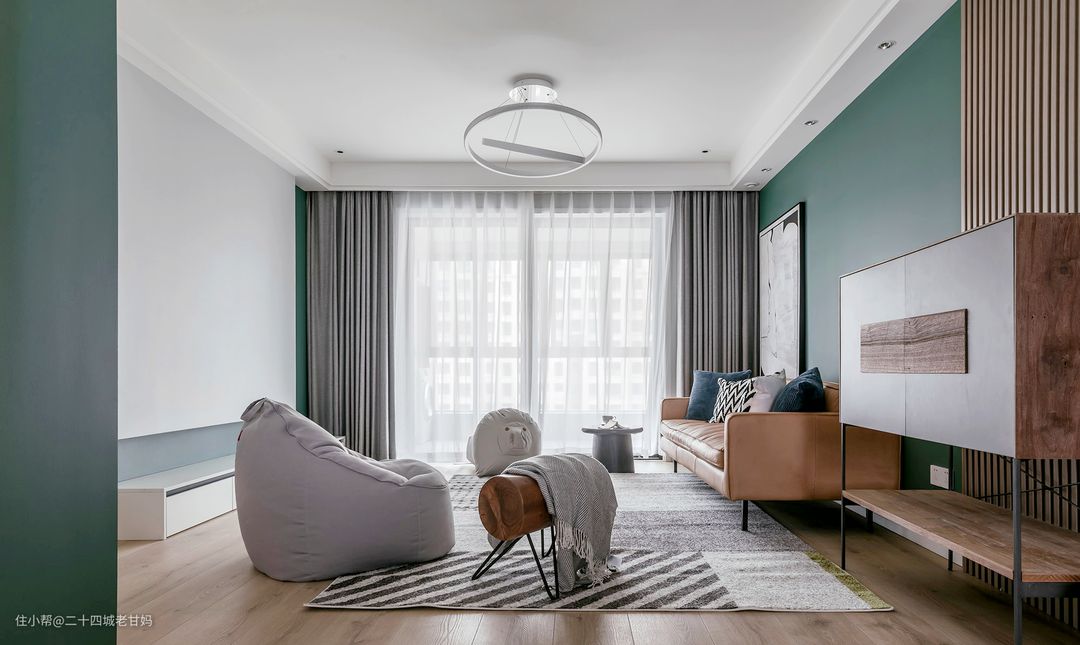 她家140㎡,客厅坚持用绿色上墙,墙面不挂电视机,有颜值有收