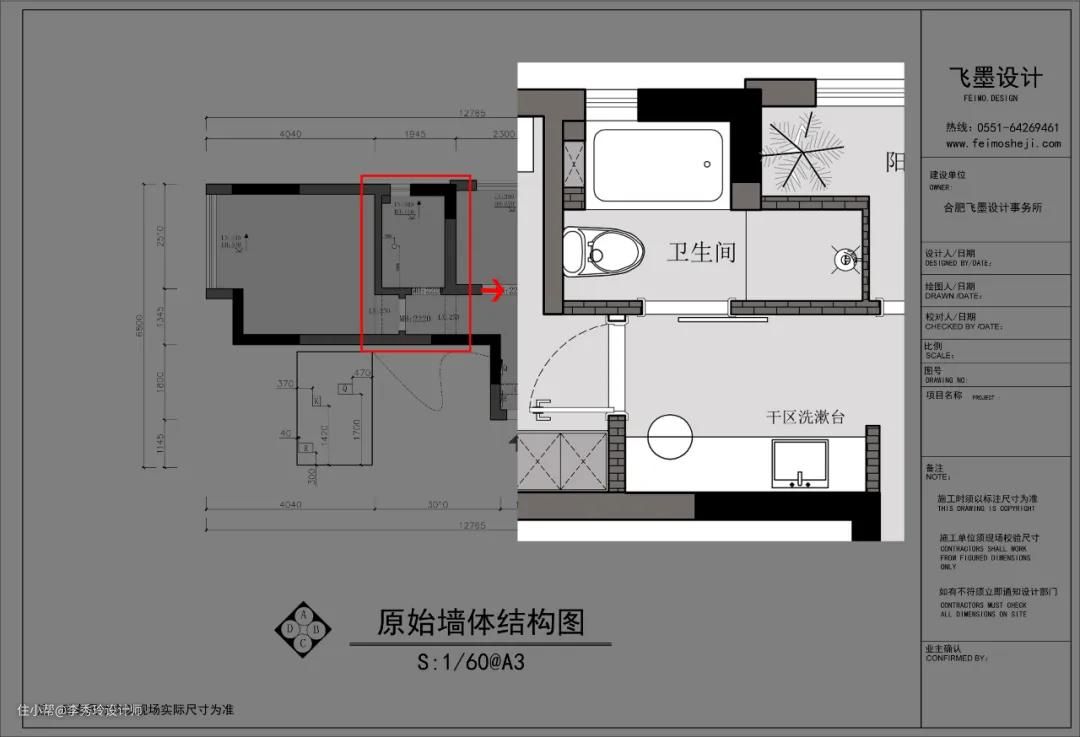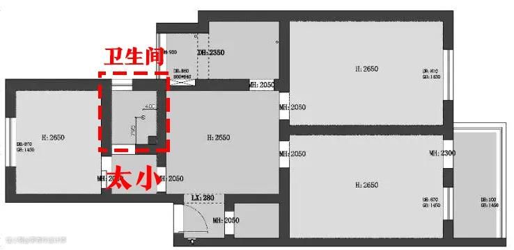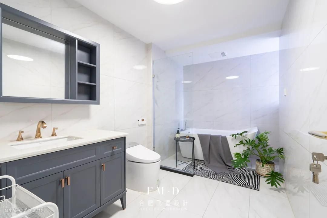 再加上,由于洗手台、马桶、淋浴共处一个空间时,若有人在如厕,另外一人就无法使用洗手台,从生活上来说会有些不方便,也需要给洗手台重新找个位置。洗手台放卫生间外。直接外移,与马桶和淋浴区一墙之隔。