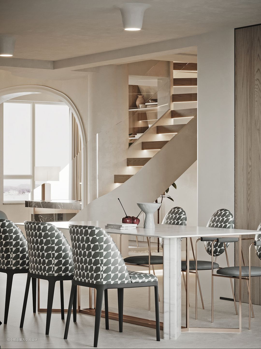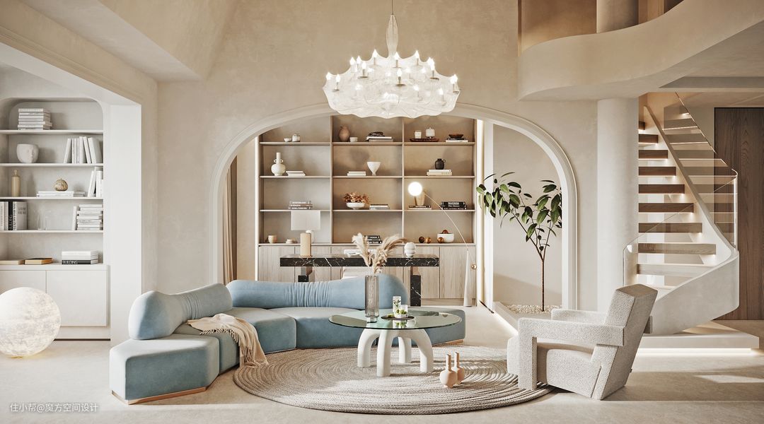 柔和的色调和曲线,为空间整天平静安稳的氛围