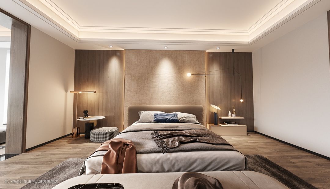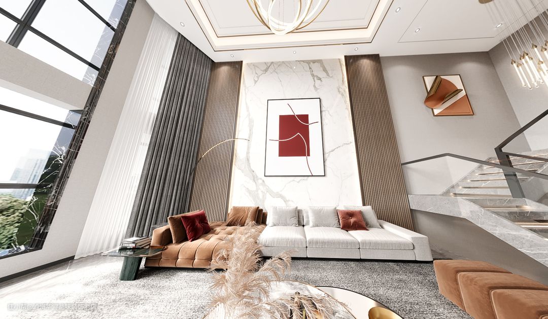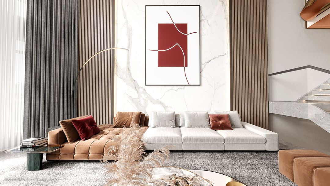 在色彩选择上,我们利用轻奢风格的特点一般会选用带有高级感的中性色,诸如驼色、象牙白、奶咖、淡黄色及深色,来演绎一种“低调的奢华”,令空间质感更为饱满。