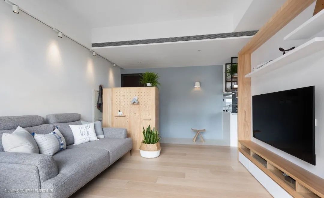 现在有许多户型,是没有规划玄关的,一进门就是客厅或餐厅,可以利用半高隔断的客厅电视墙,不到顶的柜子,结合吊挂,或是以玄关柜兼顾双面洞洞板展示墙,既能区隔出明显的格局界线,又能拥有多重的机能性。