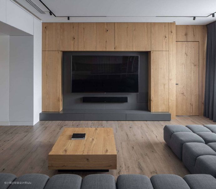 2、部分木饰面装饰:如果装修风格相对现代风,一般都会选择部分木饰面来装饰,用材质、形状的拼接,保持空间的现代时尚感,同时提升空间的温馨舒适气质。