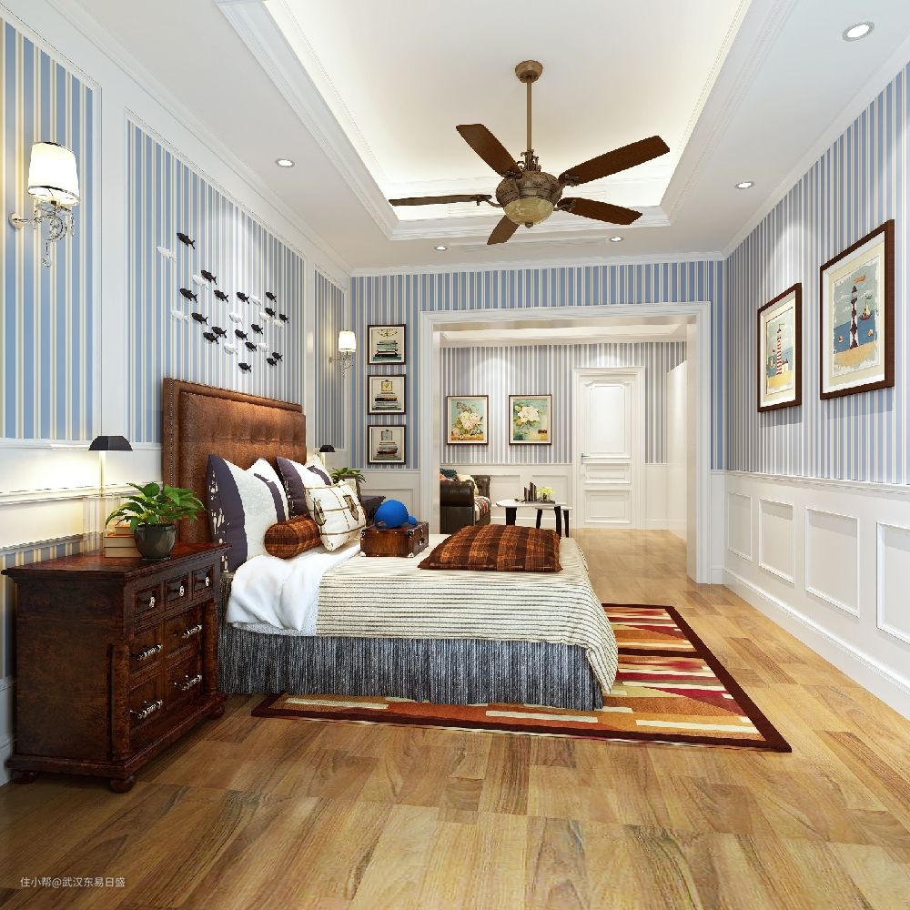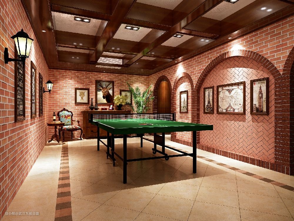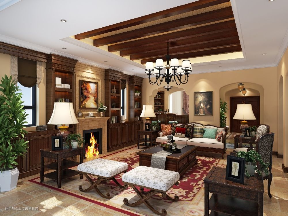 近两年在家装设计中,美式乡村风格以自然舒适的优点大行其道。这样的设计,不需要固定的模式,不强调严格的规律。美式乡村风格突出了生活的舒适和自由,在本案中,不论是感觉笨重的家具,还是带有岁月沧桑的配饰,都在告诉人们这一点。特别是在墙面肌理漆以及弧拱结构的支撑下,自然、怀旧、散发着浓郁泥土芬芳。本案色彩以自然色调为主,木色、绿色、土褐色最为常见;壁纸多为纯纸浆质地;家具颜色多仿旧漆,式样厚重;设计中多有地中海样式的拱,廊等结构的呈现,将美式乡村的舒适及自然的特点更加彰显。