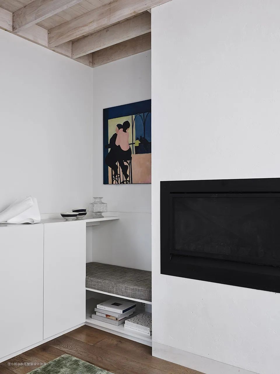 从客厅正面看过去可以完美隐藏的读书角设计,精巧的结构下蕴含的是更多美学及功能,诠释了“用最少的设计赋予空间无限的想象”的极简主义精神。