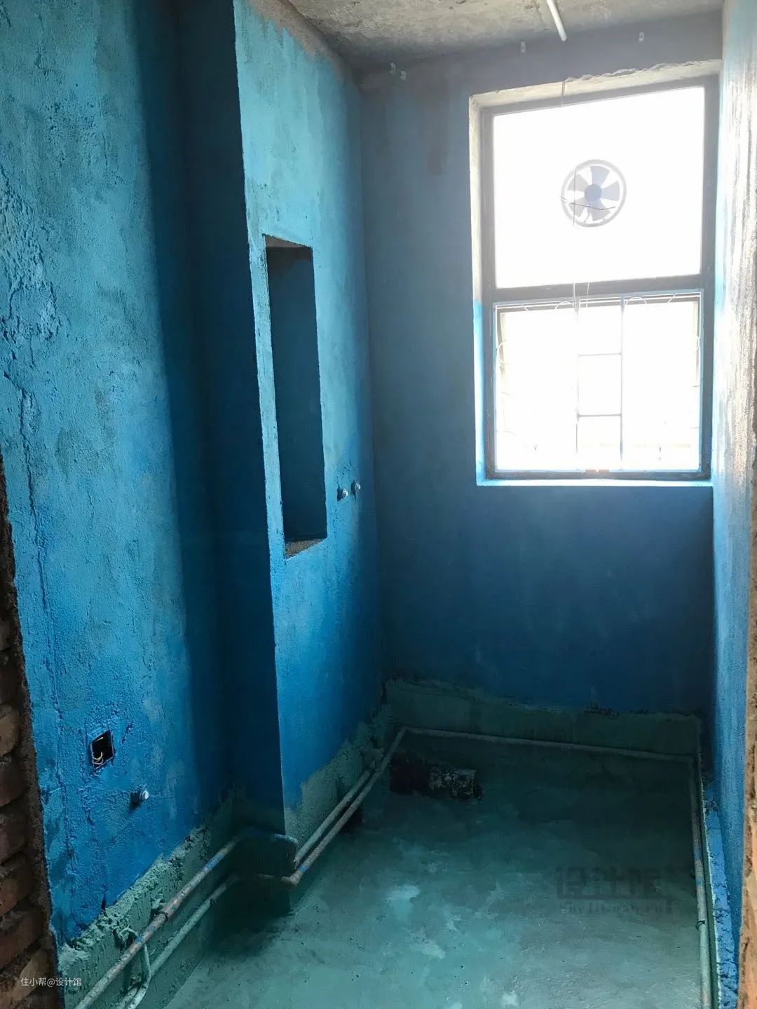 ▲“蓝墙绿地”,专门的墙面防水涂料,是可以直接贴墙砖的。