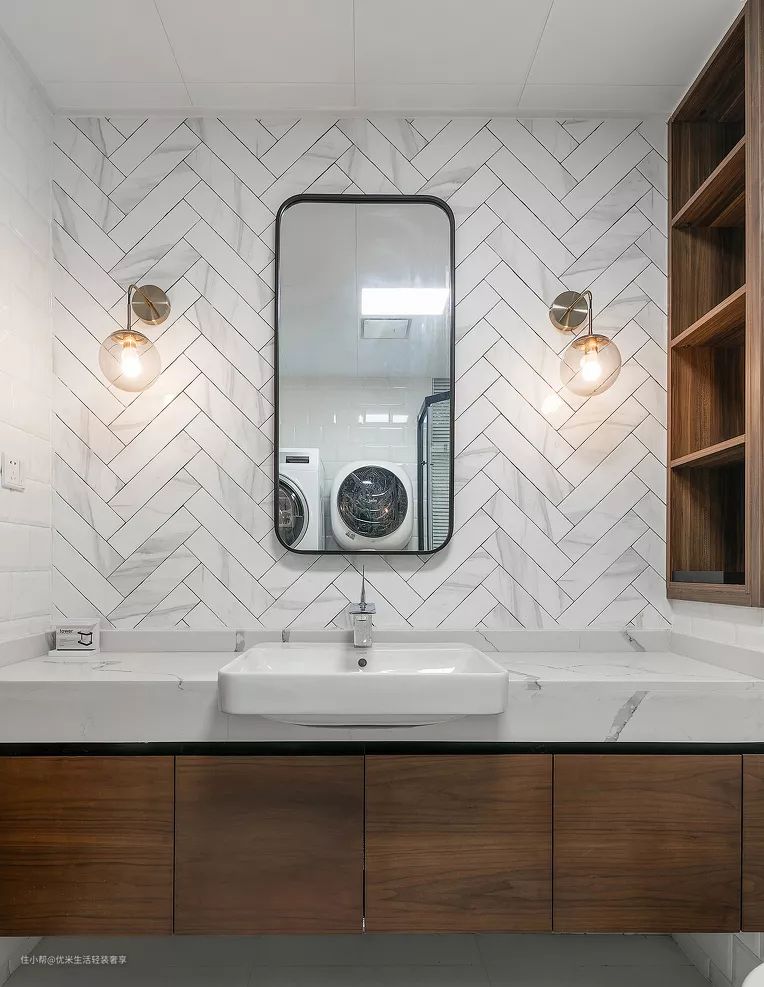 好用又好看的小白砖是小卫生间的常客,经典的正方形小白砖、长方形小白砖,加入不同的色彩,使用不同的拼贴方法,让原本简单的瓷砖变得时尚起来。常用于美式风格、北欧风格、日式风格,小于7㎡的卫生间。