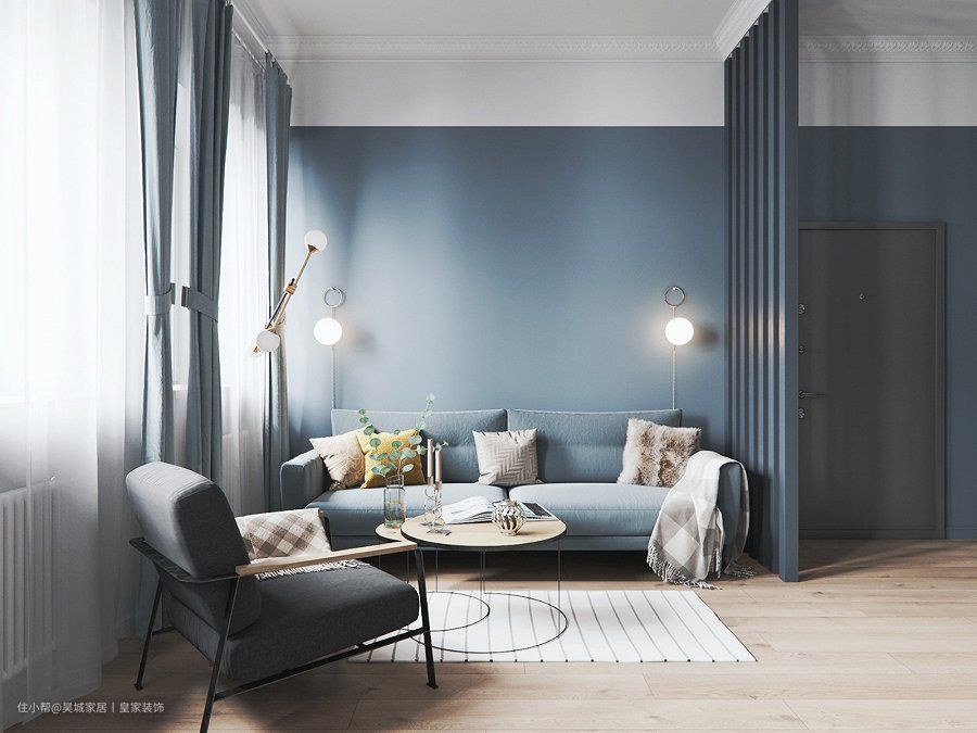 雾霾蓝与其他蓝色不同的是,在蓝色中加入了灰色调,这种具有高级感的颜色近几年很流行,不管是用来点缀,还是与灰色一样大面积使用,都不会出错。将它与灰色一起搭配,层次感分明,冷淡而不压抑,有一种清冷的气质,非常受年轻人喜爱。