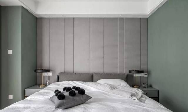 浅灰与浅灰绿的搭配,会产生一种意想不到的干净感,使空间变得更通透、有活力,再适当摆放一些绿植,整个空间都会散发一种自然、清新的感觉,高级灰和浅灰绿的搭配在活力中又不失一种留白的意境。