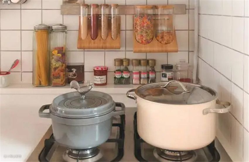 将小型置物架或者瓶瓶罐罐的调味品放在上面,整齐排列,一目了然,拿取方便,再也不会出现做饭菜时手忙脚乱,把油壶打翻的现象了。