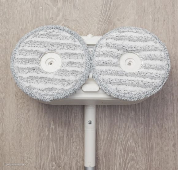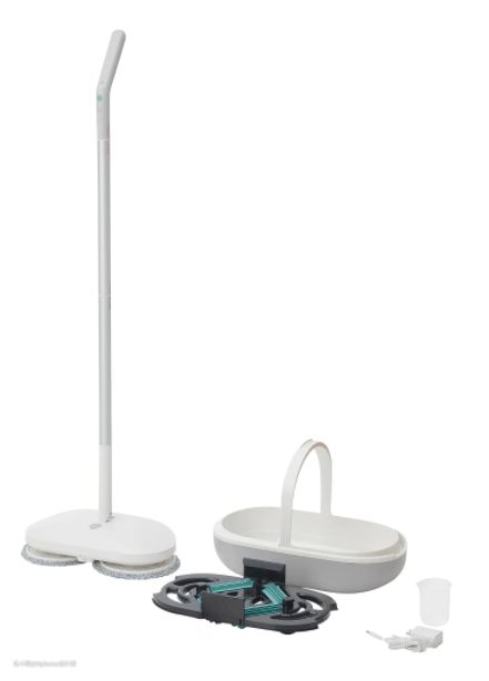 扫地后的拖地工作,可以更轻松!这款电动拖把配有两个可旋转的软垫和容器,可以一边喷水一边拖地,最棒的是按一下按钮,拖把会在容器内部自动清洁及干燥。使用完后把拖把固定在容器上,不占用储物收纳空间,实实在在好用的懒人清洁工具。