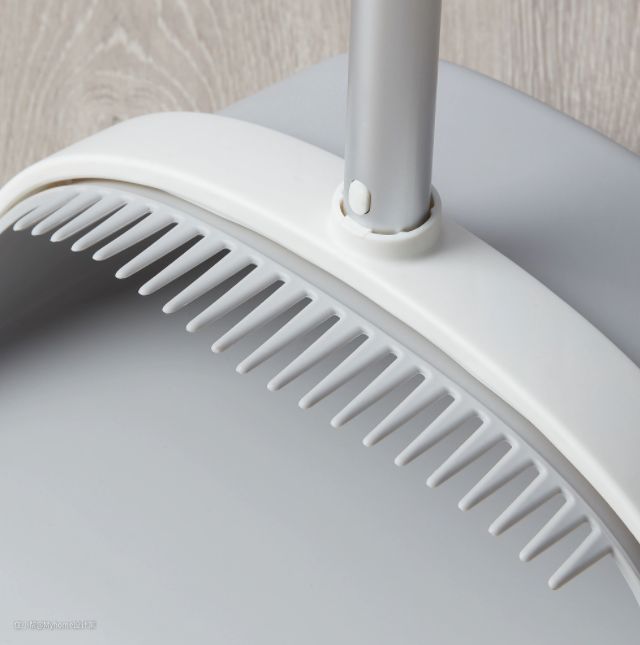 对比别家的扫帚,宜家这款簸箕扫帚细节之处做的挺不错,簸箕带有橡胶边,可以紧贴地面把灰尘轻松扫入簸箕。另外簸箕上缘有锯齿设计,可以清理缠绕扫把的毛发。扫把的毛用纤维制作,很细密清扫小颗粒很轻松。很赞的是簸箕可折叠,不用的时候可以挂起来在墙上很省空间。
