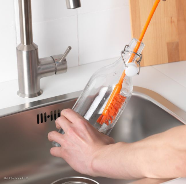 平时洗刷高脚酒杯、窄口瓶子、奶瓶等都很麻烦,手无法伸进去清洗,强烈建议你入宜家这款瓶刷,4.9元用起来真赞。刷子带有柔软的刷毛和纤细手柄,轻松就能伸入狭窄瓶口,直达瓶子底部清洁污渍。