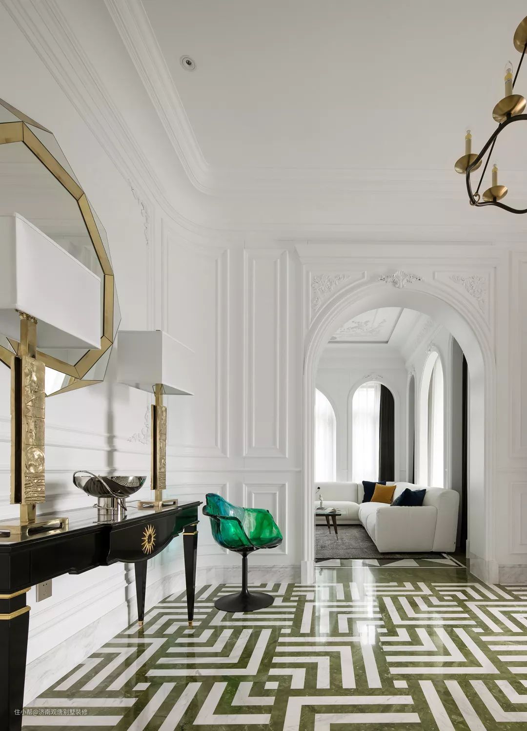 提到复古的法式风格,不经就会想起赫本,那种优雅又时尚的经典,十分让人难忘。今天济南观唐别墅装修小编带大家看一套法式古典风格的别墅,复古的元素和时尚的搭配,也是极其优雅的。