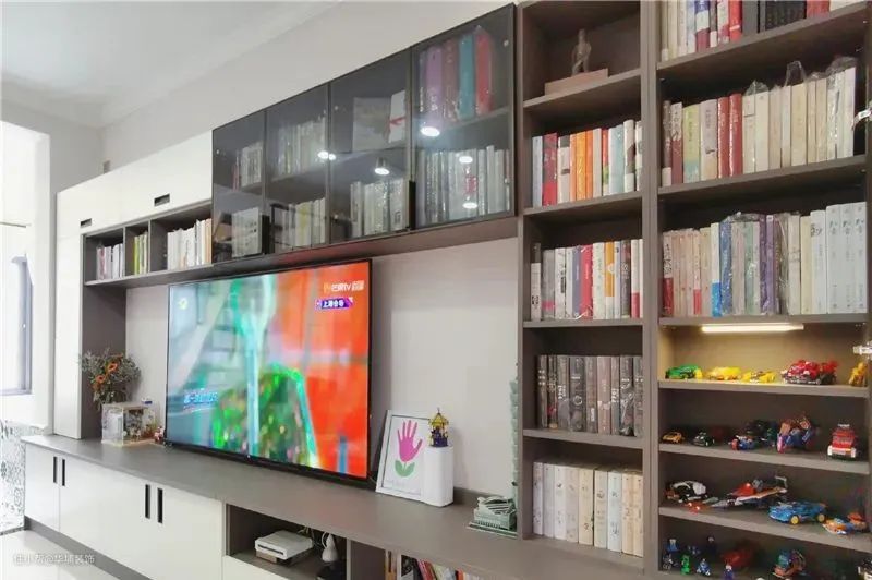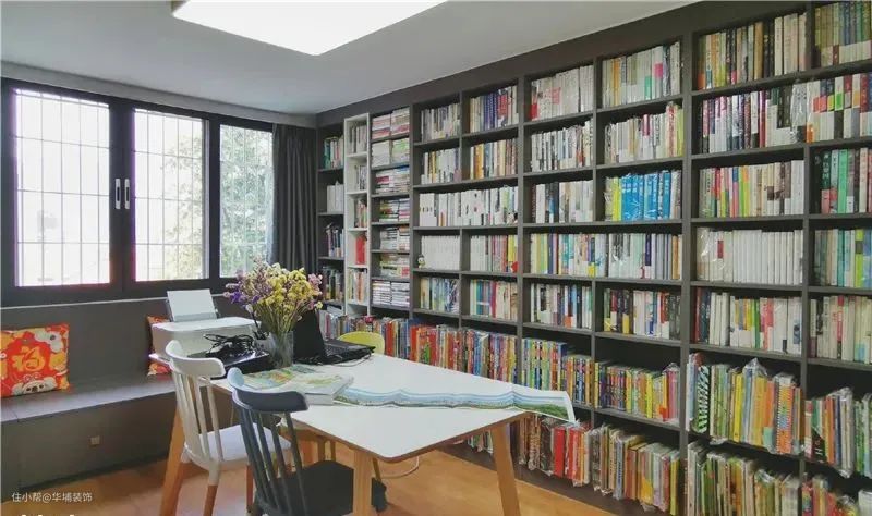 ▲书房,打造了两面墙的大书柜,整齐有序的放置着各种书籍,名副其实的“家庭图书馆”。房中间放了张宽敞的大书桌,方便办公或写作业,可供多人一起使用。