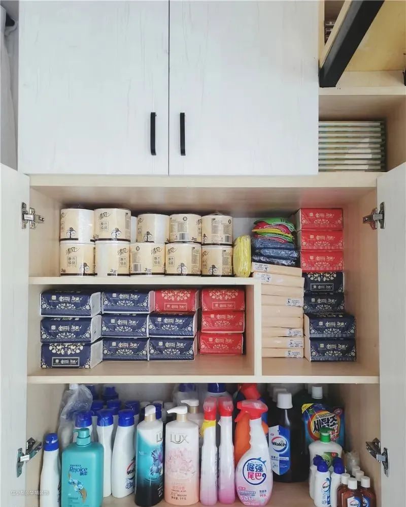▲主卧装修完美还原效果图,整墙到顶大衣柜,柜门采用按压式掩门设计,收纳充足且颜值超高。睡床顶部装了一组吊柜,增加收纳空间,换季衣物、被褥都放在这。