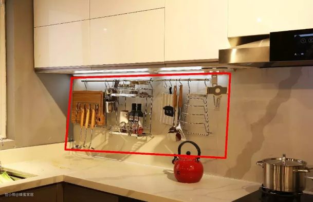 正确的做法:将这些物品挂墙收纳,不仅拿取方便,而且清洁打扫时,不用担心水渍到处都是,还有细菌滋生的问题。