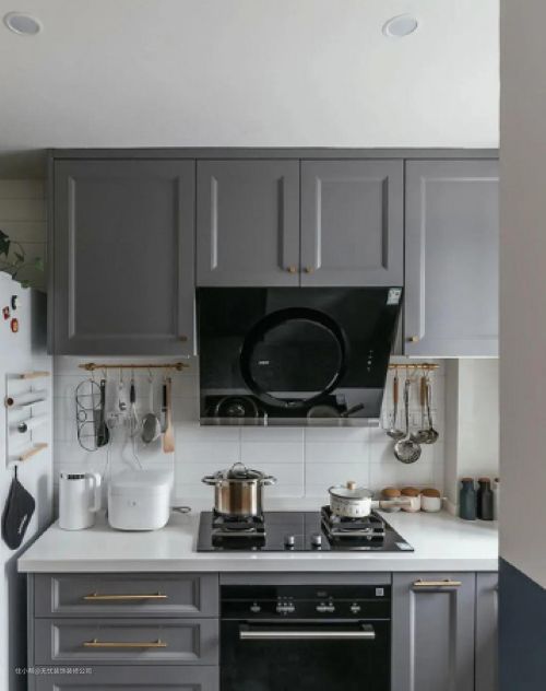 厨房的灰色和白色搭配简单时尚,金色把手突出精致感,白色墙砖和柜台以颜色对比强调美学,让主人除了烹饪之外还能感受到美丽。