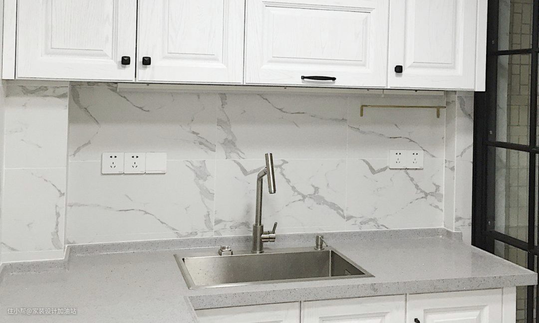 使用大块瓷砖,缝隙少,即便是有油污溅上去,也没有卫生死角,因此清洁起来也就轻松很多。